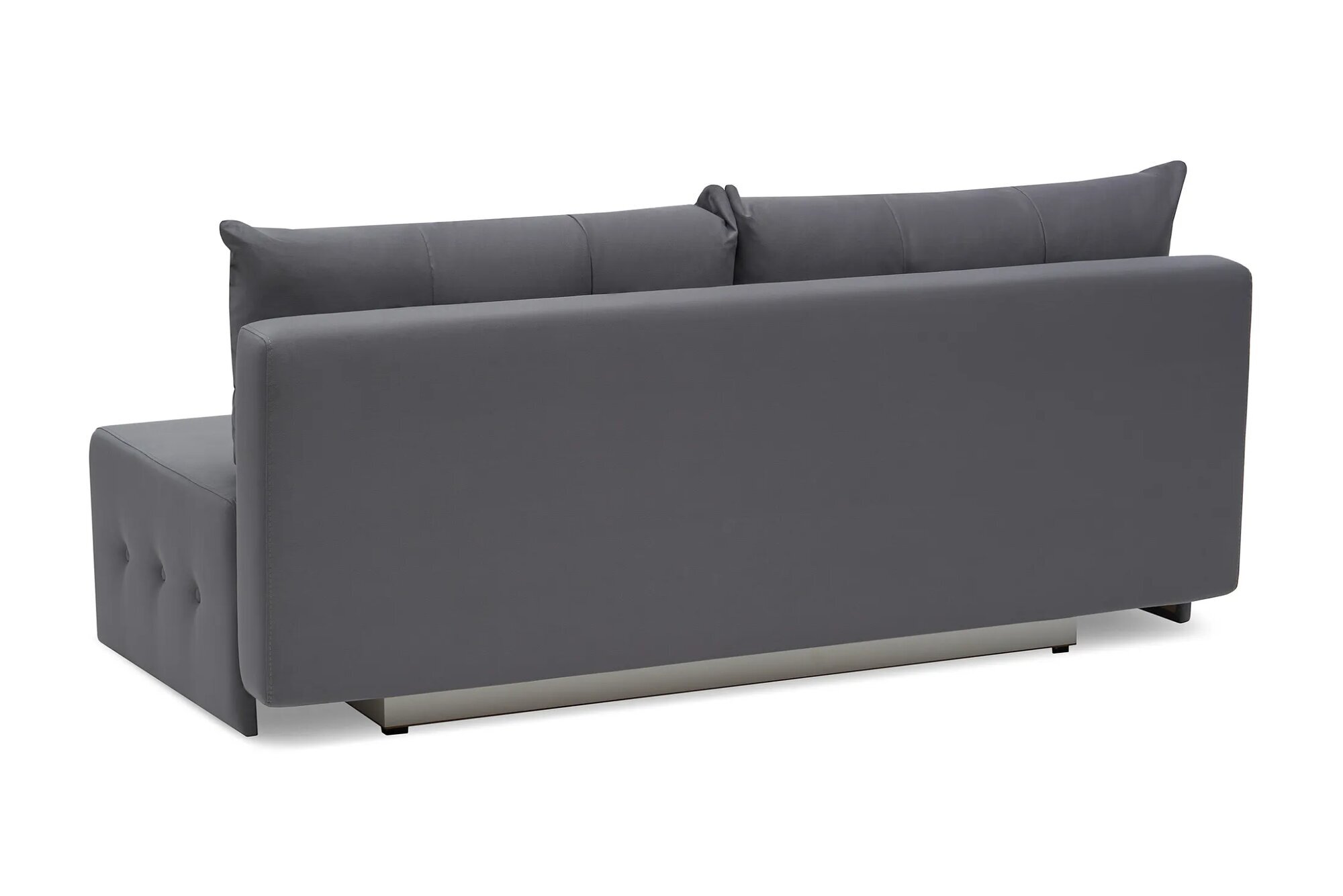 Диван выполнен в минималистичном стиле, что позволяет ему легко вписаться в любой интерьер. Обивка из велюра темно-серого цвета придает дивану изысканный вид и обеспечивает долговечность.
