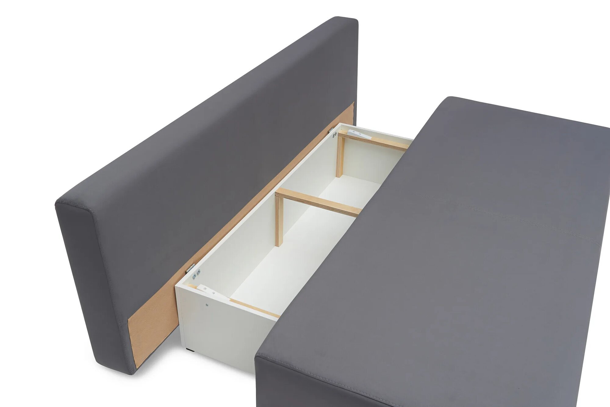 Диван оснащен ящиком для белья, что позволяет хранить постельные принадлежности и другие вещи. Глубина сиденья составляет 54 см, что обеспечивает комфортное размещение. Высота спинки составляет 35 см, а высота дивана без подушек - 72 см.