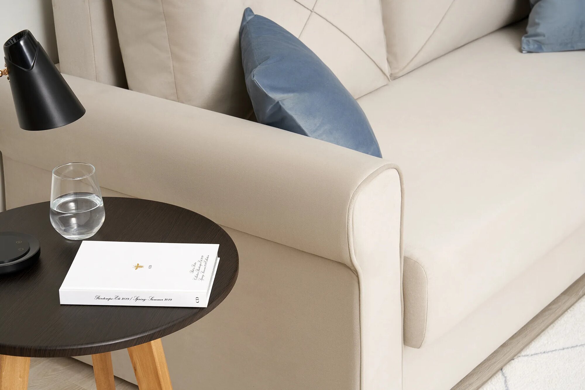 Диван выполнен в классическом стиле, что делает его подходящим для любого интерьера. Обивка из велюра бежевого цвета придает дивану изысканный и элегантный вид.