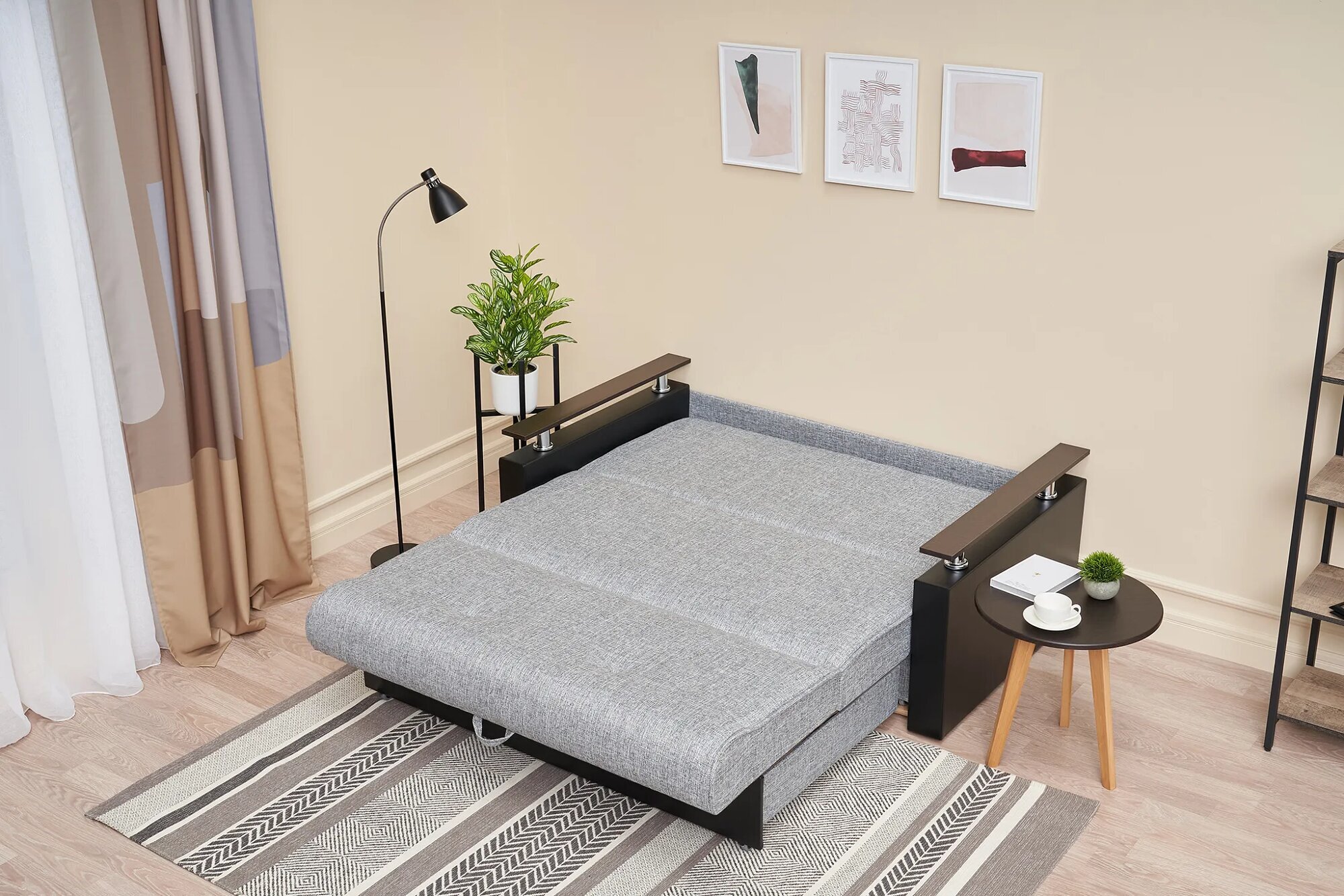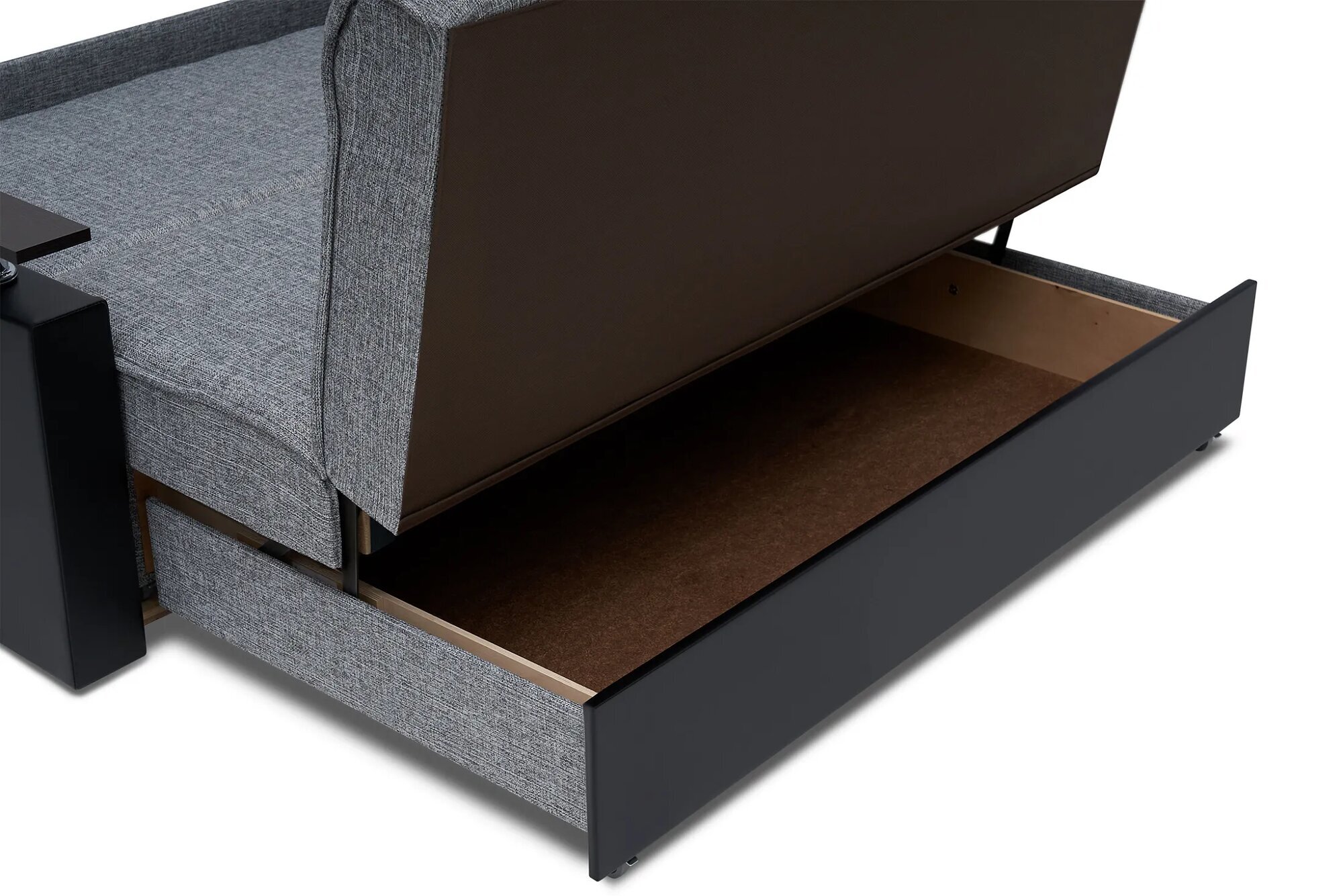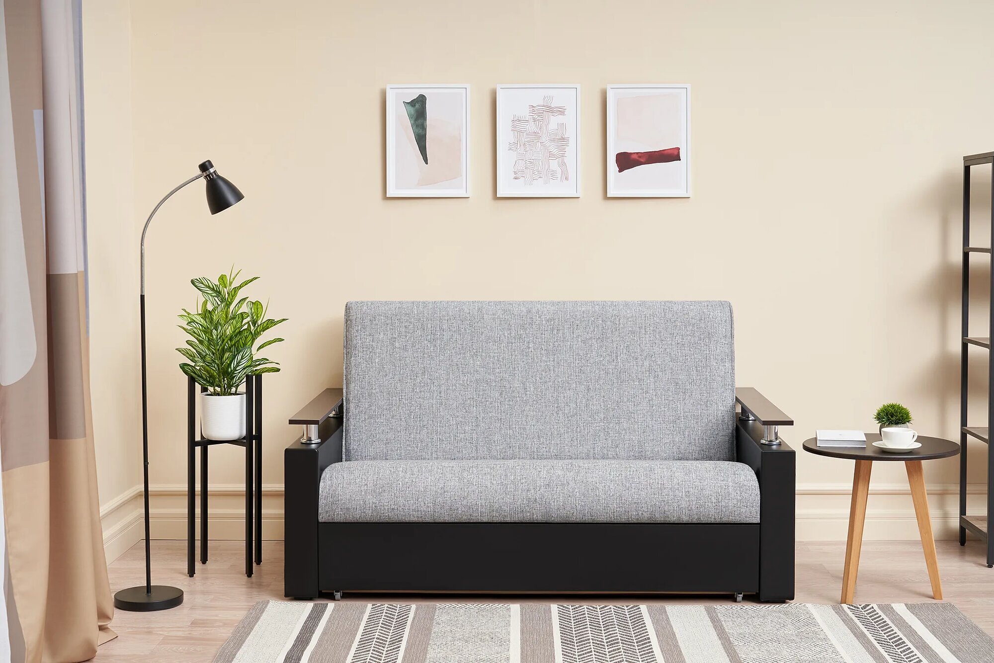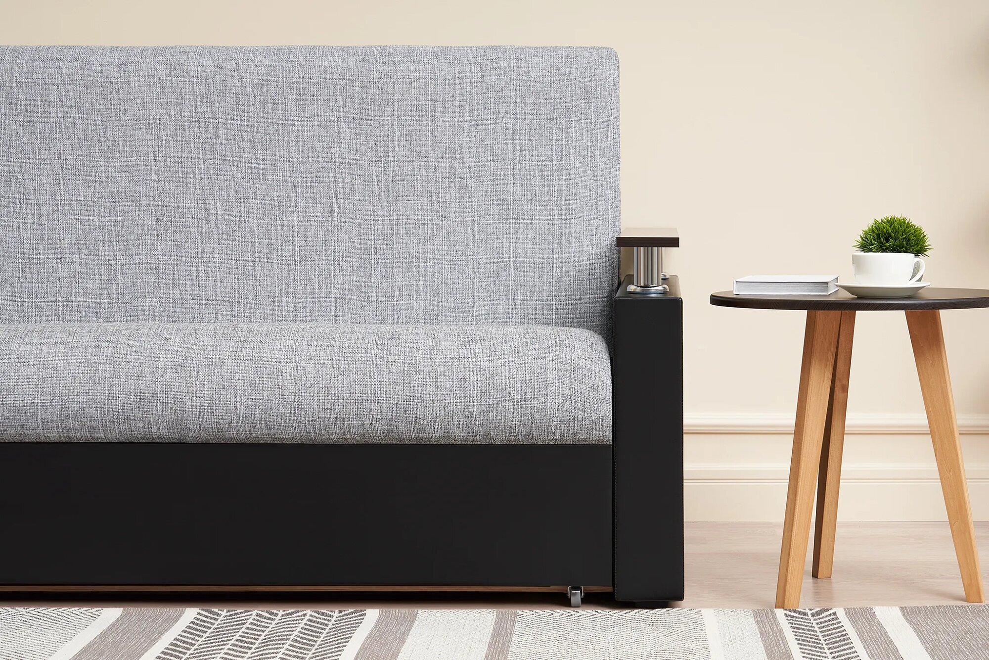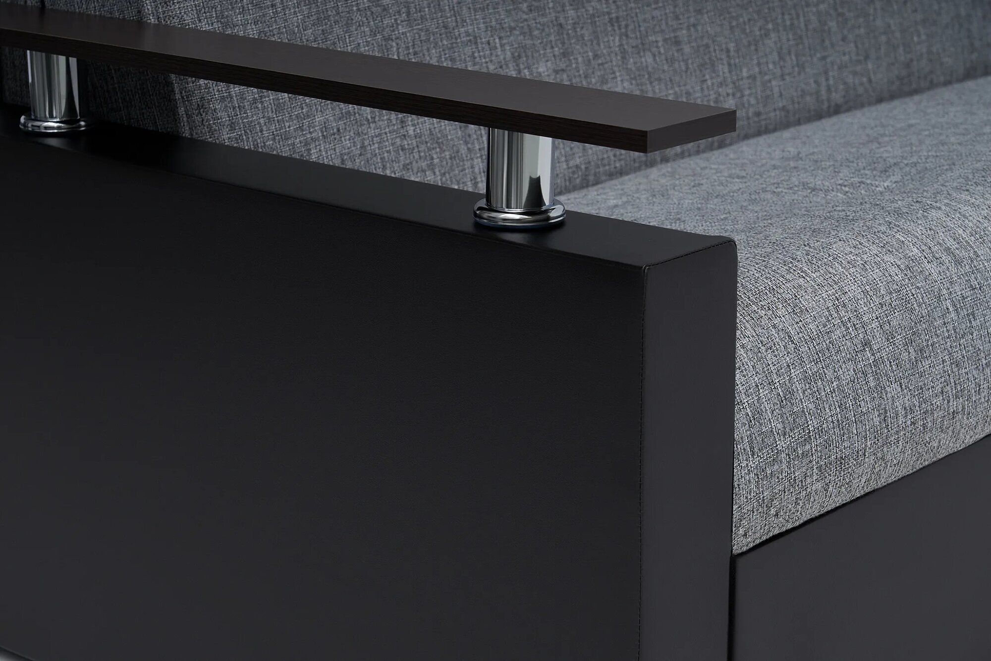 Диван-кровать Сантана представляет собой современное и стильное решение для вашего дома. Выполненный в сером и черном цветах, он станет ярким акцентом в интерьере и подчеркнет ваш вкус.