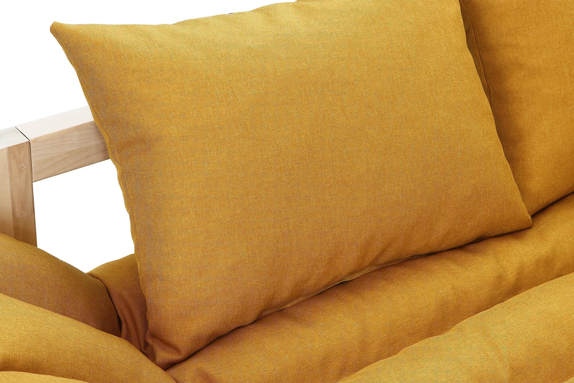 Каркас изготовлен из массива березы и фанеры, что гарантирует его прочность и долговечность. Наполнитель из пенополиуретана обеспечивает мягкость и комфорт при использовании.