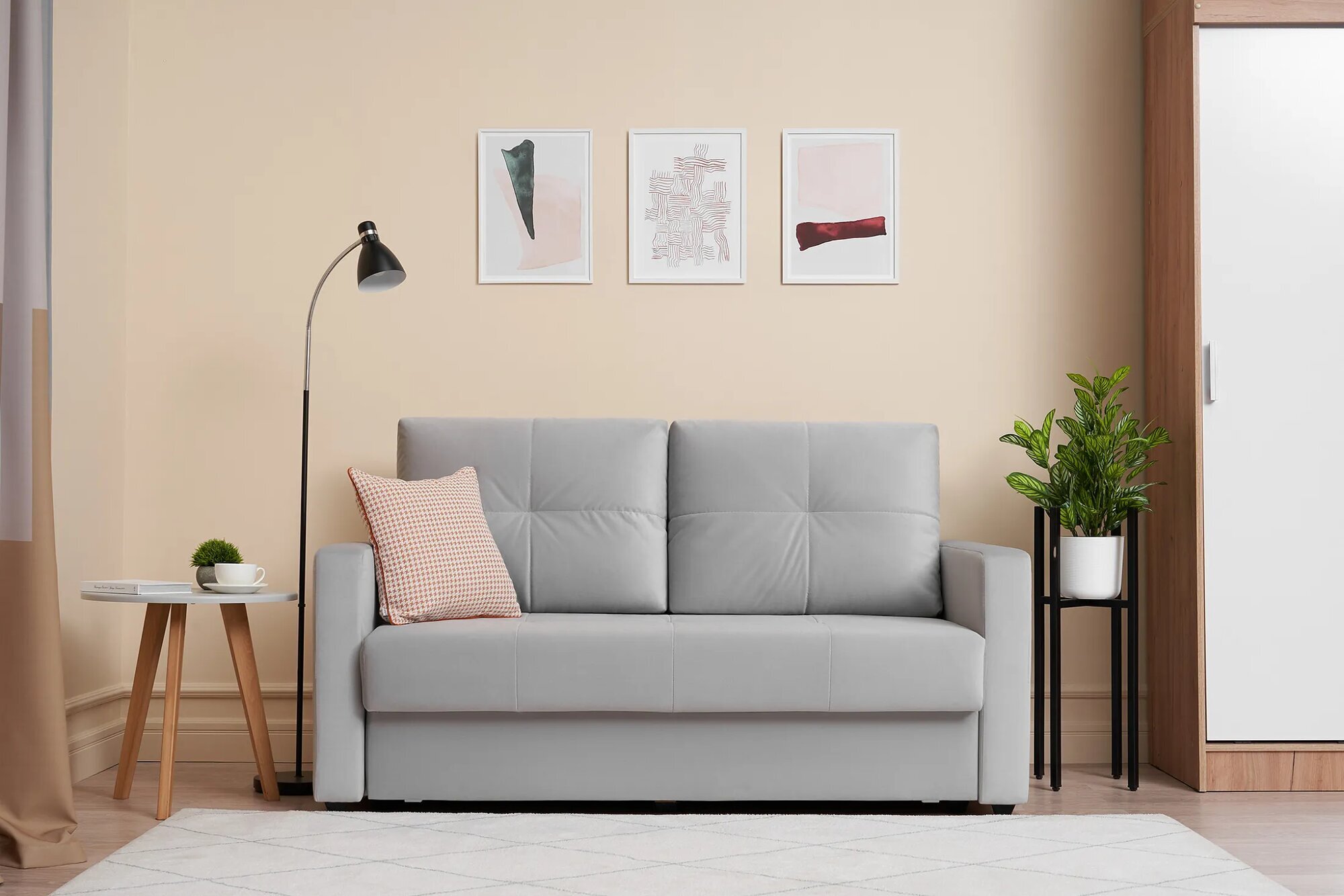 Диван Отто, шагающая еврокнижка, велюр, серый