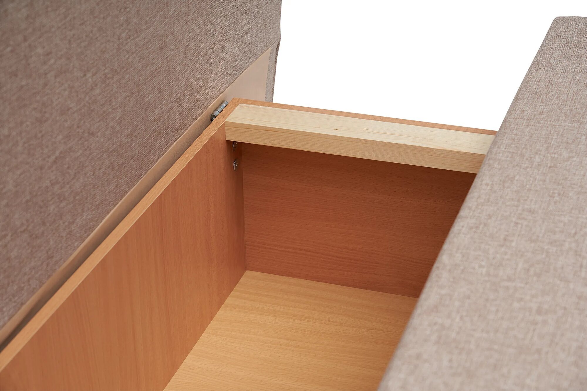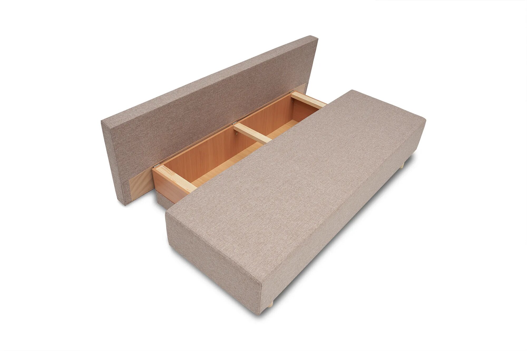 Диван оснащен ящиком для белья, что позволяет хранить постельные принадлежности и другие вещи, экономя пространство в комнате.
