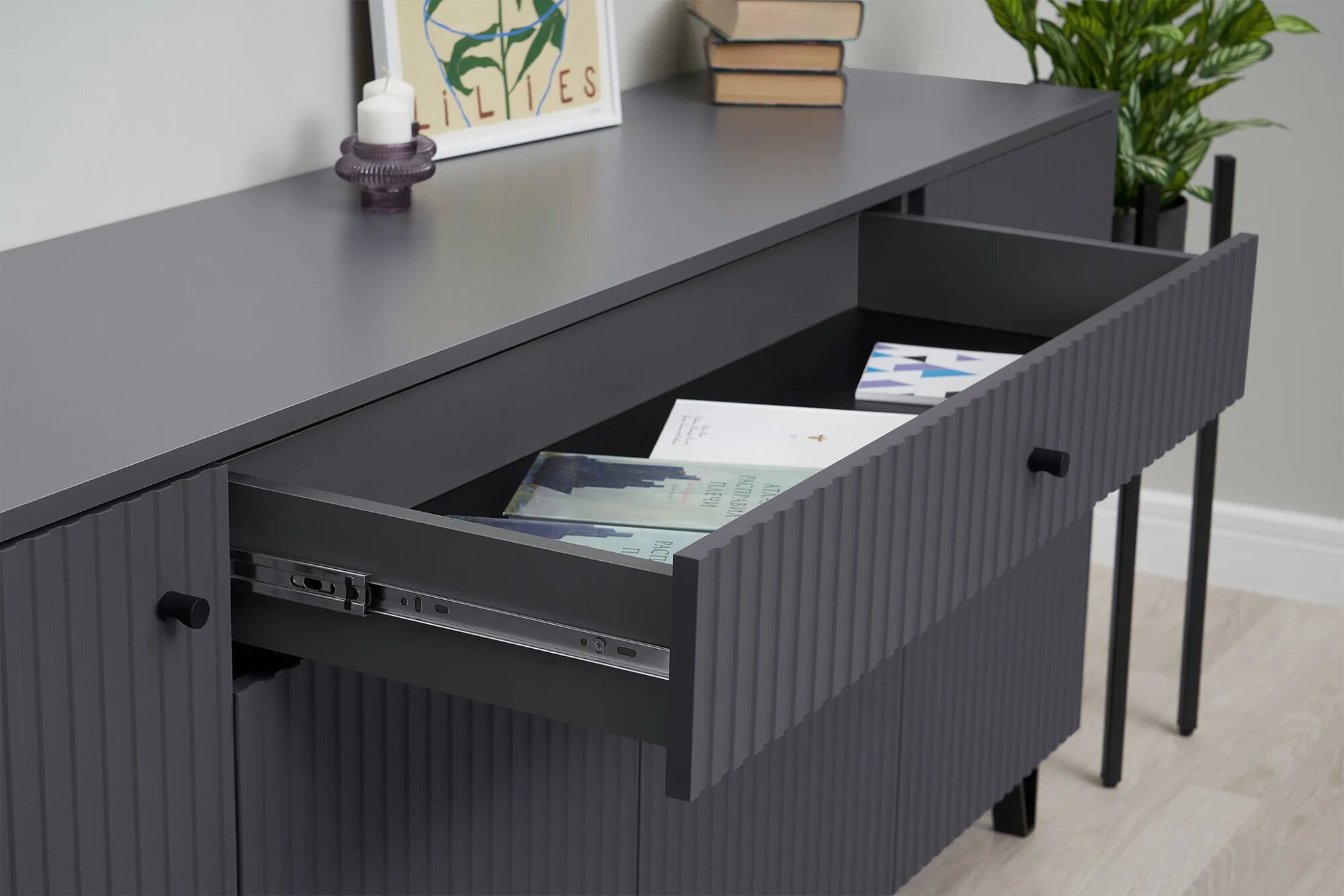 Комод Тесса графит - это сочетание функциональности и эстетики, которое станет незаменимым элементом вашего интерьера.