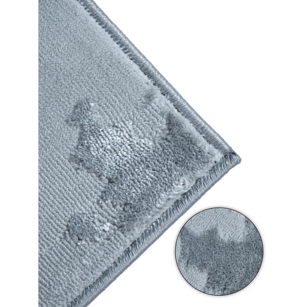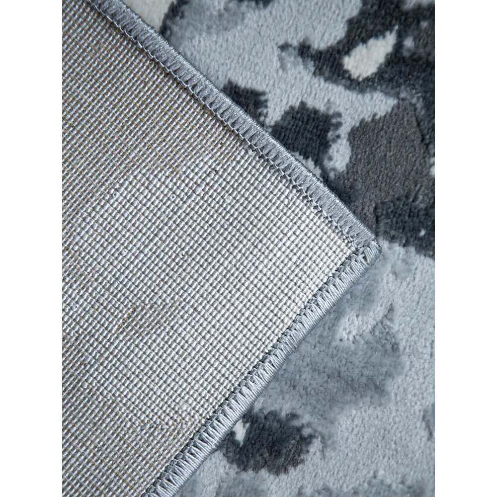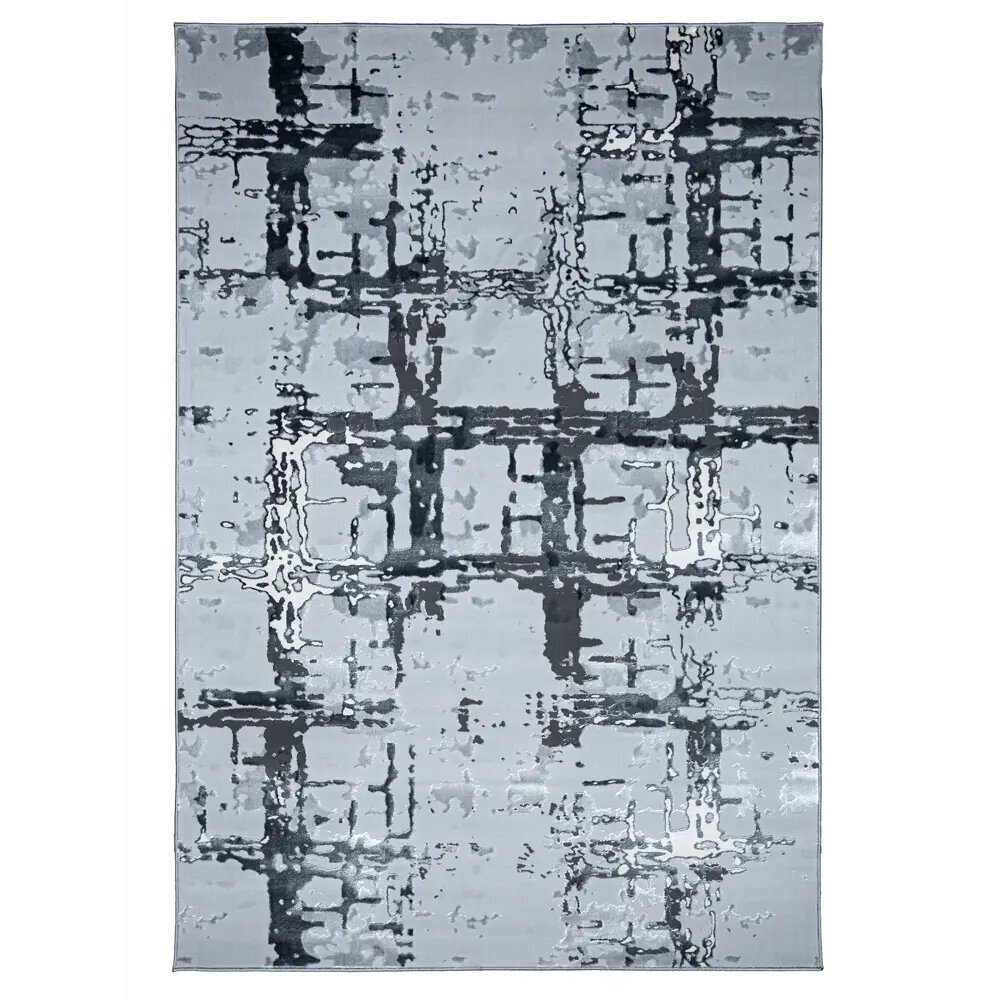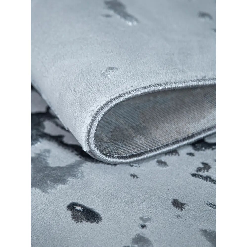 Ковер имеет прямоугольную форму и абстрактный тип рисунка, что позволяет ему гармонично вписываться в различные стили интерьера. Цвет товара - серый, который легко сочетается с другими оттенками и цветами.