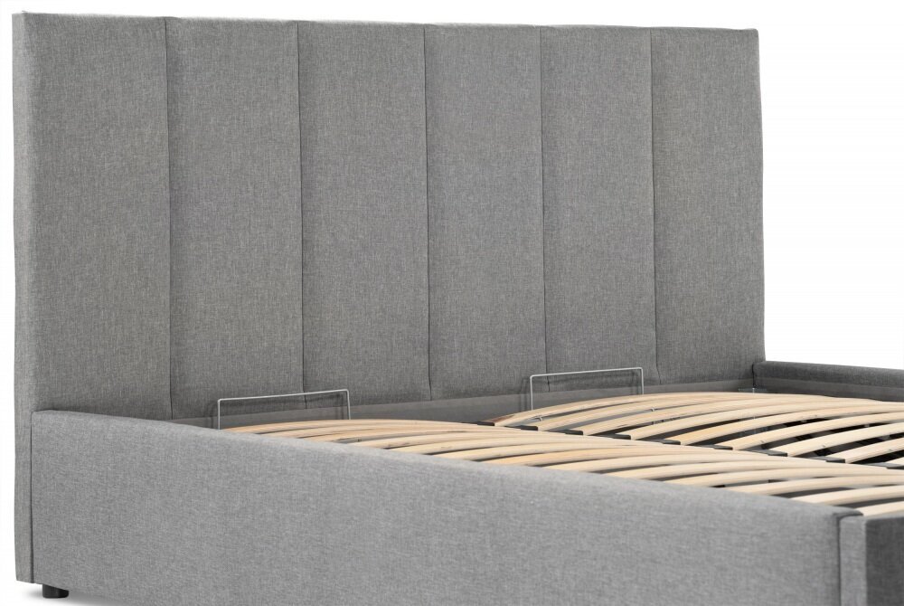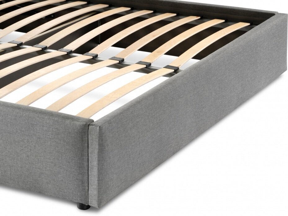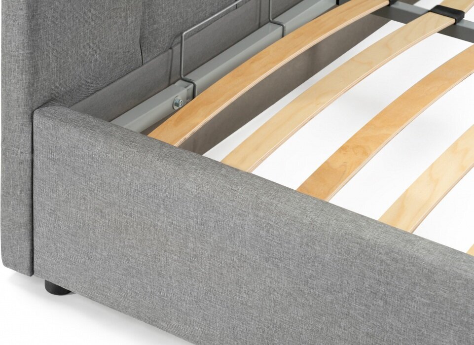 Кровать выполнена в стильном сером цвете, который легко впишется в любой интерьер. Обивка из рогожки придает изделию элегантный вид и обеспечивает долговечность. Каркас кровати изготовлен из качественного ЛДСП, что гарантирует прочность и надежность конструкции.