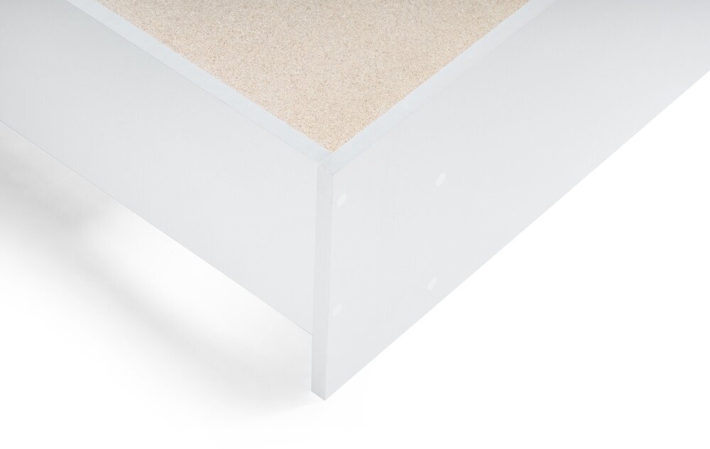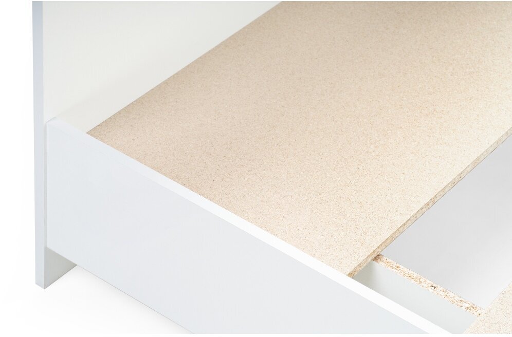 Кровать изготовлена из качественного материала ЛДСП, который обеспечивает прочность и долговечность изделия. Максимальная нагрузка на спальное место составляет 120 кг, что позволяет использовать ее для людей разного телосложения.