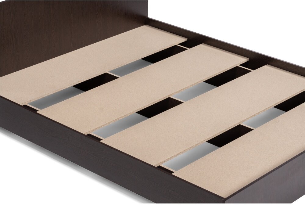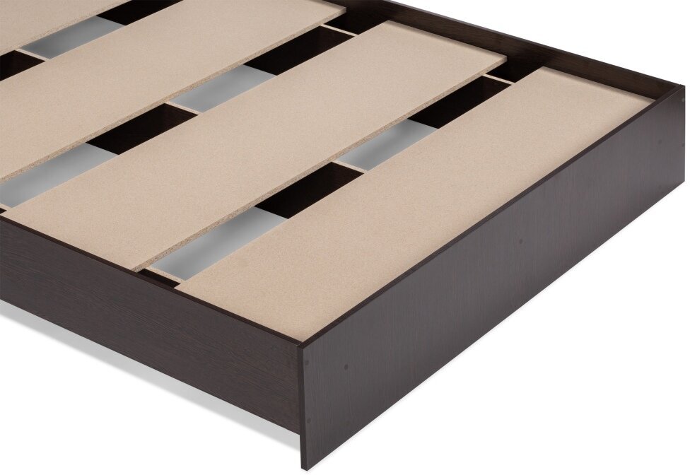 Кровать выполнена в минималистическом стиле, что делает ее подходящей для любого современного интерьера. Цвет венге придает кровати изысканный и элегантный вид.