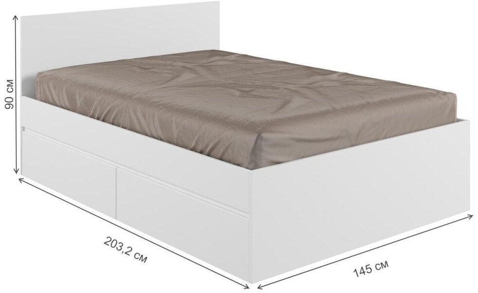 Спальное место кровати имеет размеры 140х200 см, что обеспечивает комфортное размещение двух человек. Высота изголовья составляет 90 см, что позволяет удобно расположиться во время чтения или просмотра телевизора.