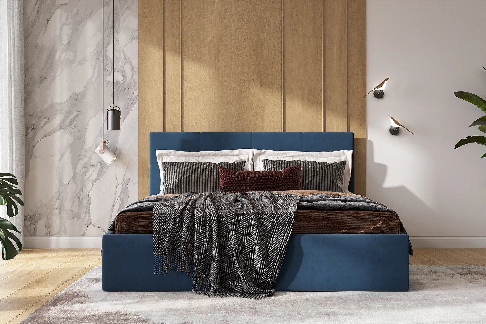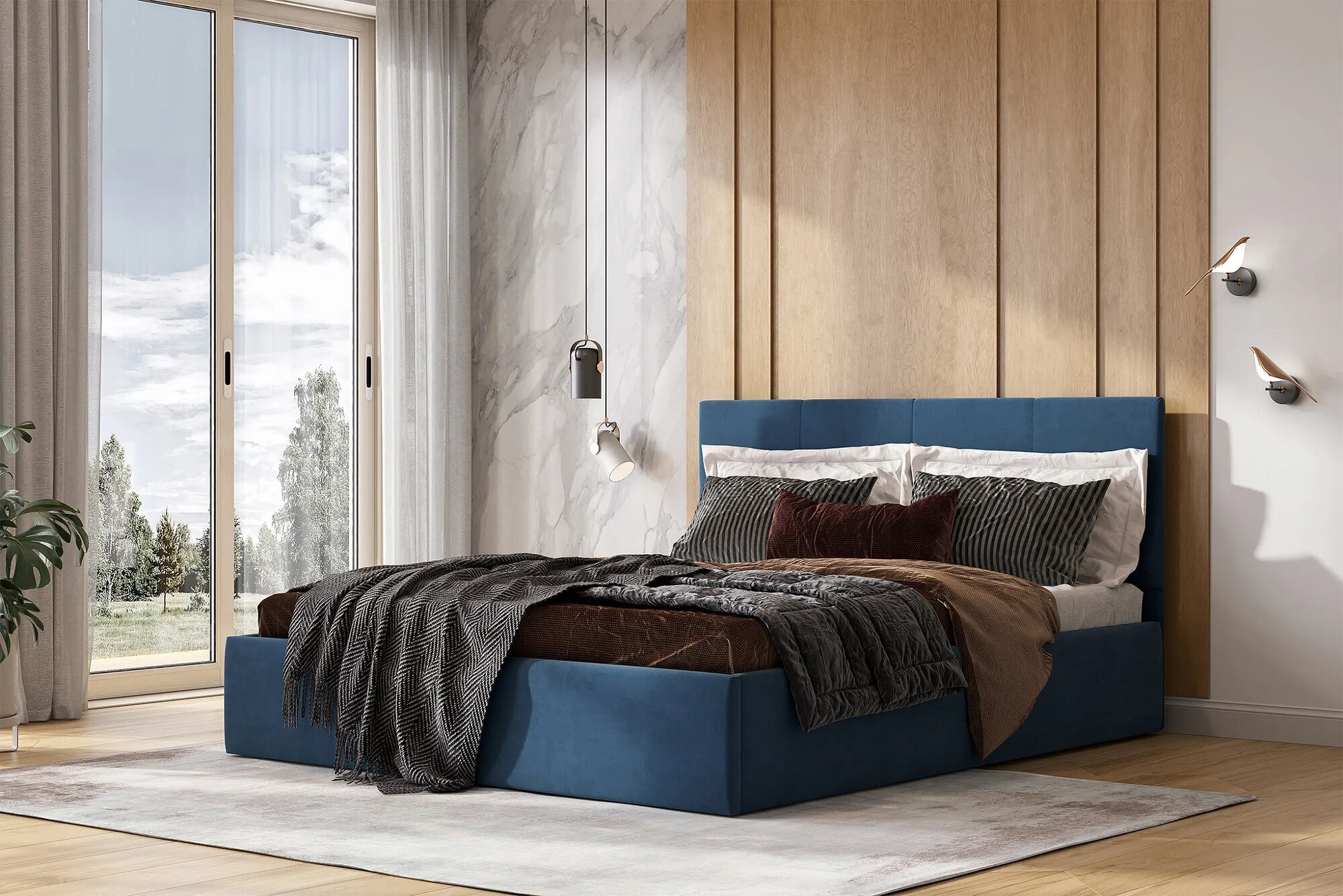 - Размер: 160х200 см, идеально подходит для двуспального сна- Материалы: каркас из ЛДСП, обивка велюр