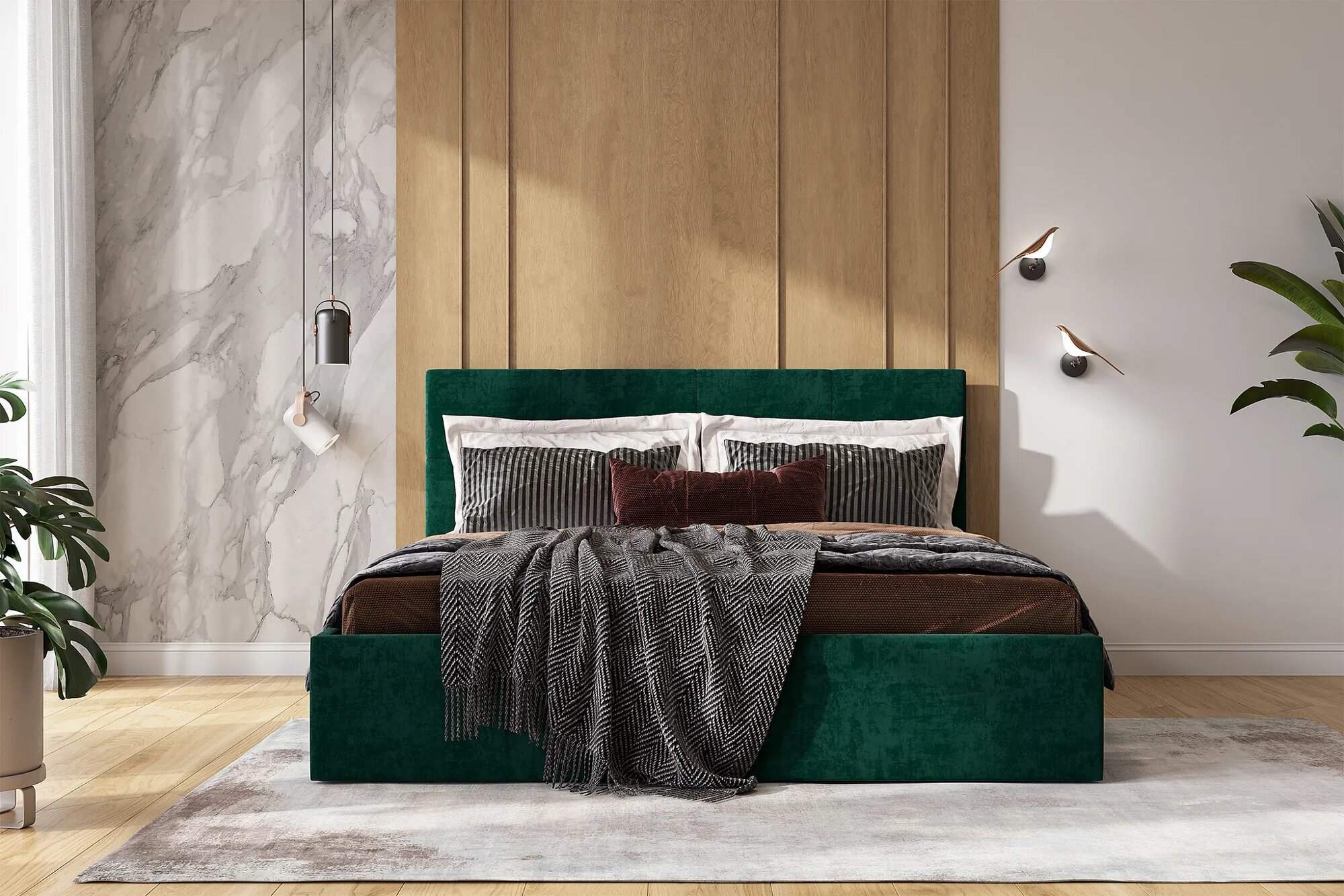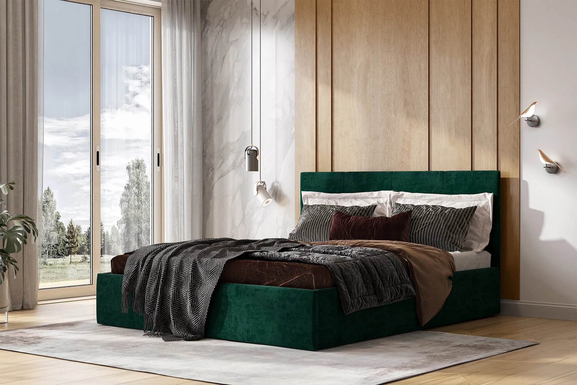 - Размер: 160х200 см, идеально подходит для двуспального сна- Материалы: каркас из ЛДСП, обивка велюр