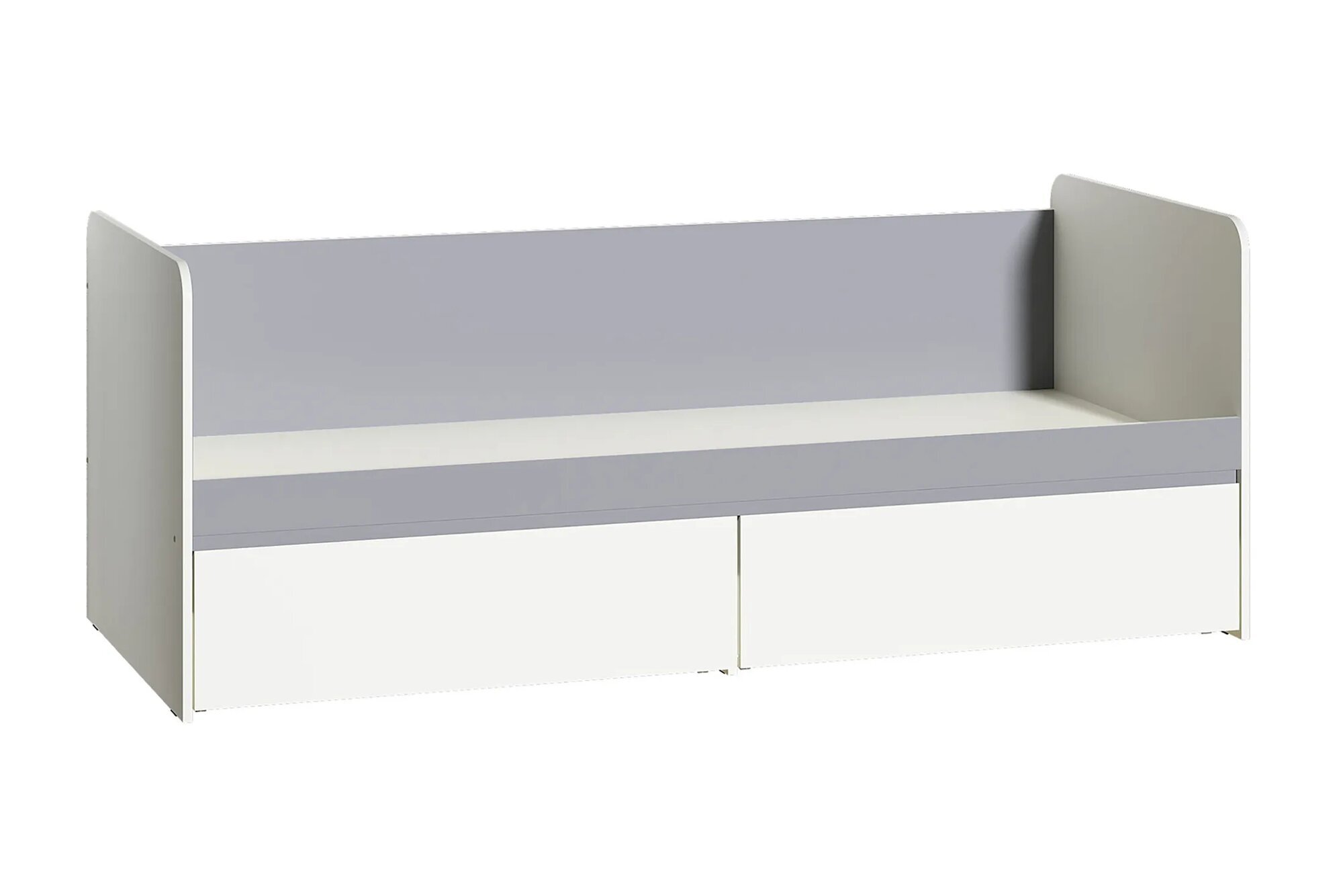 Каркас кровати выполнен из качественного ЛДСП, что обеспечивает прочность и долговечность изделия. Цвет каркаса – белая шагрень/серый, что придает кровати современный и стильный вид.