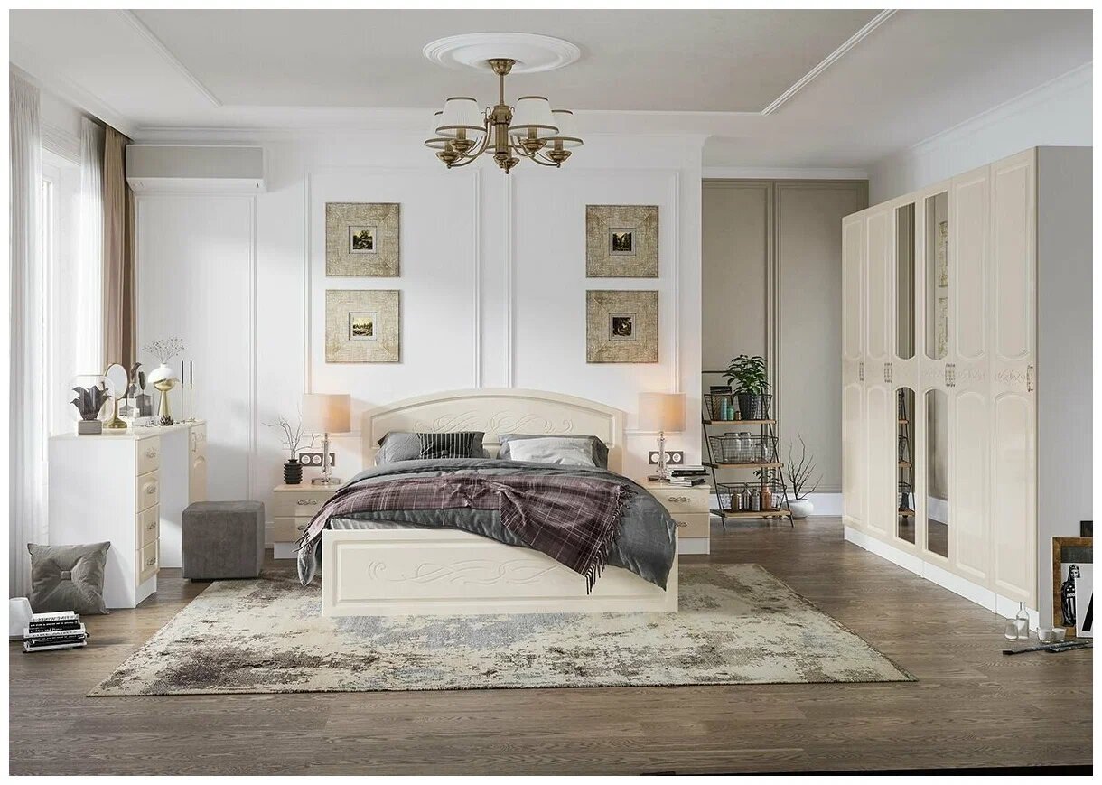 Кровать выполнена в классическом стиле, что позволяет ей гармонично вписаться в любой интерьер. Белый и бежевый цвета создают приятную атмосферу и делают кровать визуально легкой и воздушной.