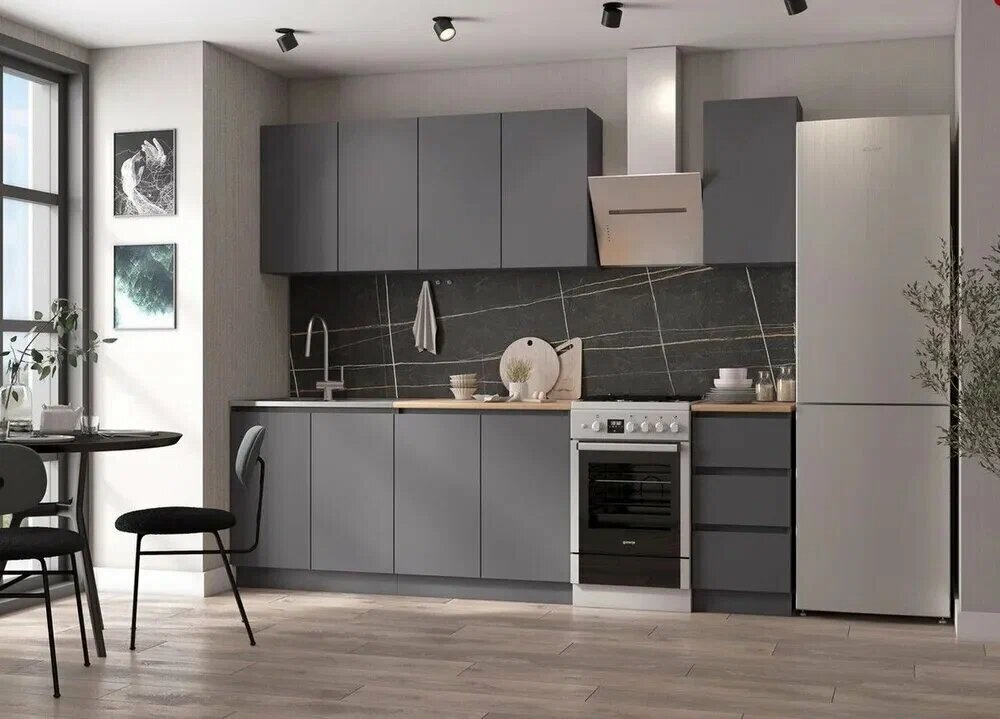 Кухня прямая Бруклин 2.0 м - это современное и функциональное решение для вашей кухни. Цвет графит/дуб сонома придает ей элегантный и стильный вид, а материал ЛДСП гарантирует прочность и долговечность.