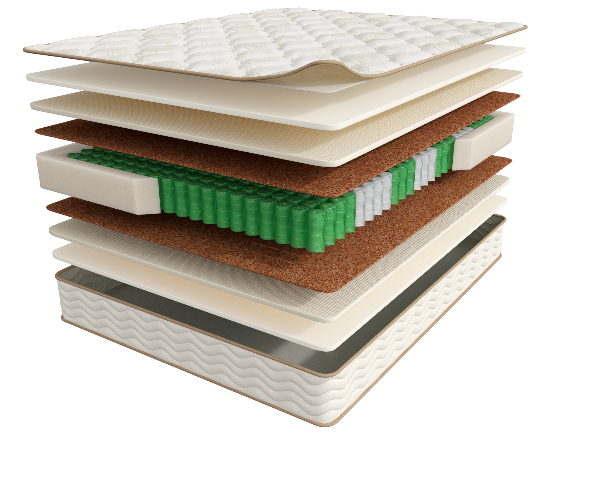 Bicocos - инновационный синтезированный материал с полиэфирными волокнами. Прочность бикокоса в разы выше кокосовой койры. Бикокос имеет более жесткую поверхность, создавая упругое спальное место.