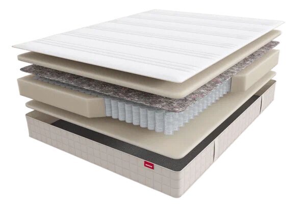Основой матраса является пружинный блок с независимыми пружинами, который обеспечивает оптимальную поддержку и равномерное распределение нагрузки. Благодаря этому, матрас обеспечивает анатомическое соответствие контурам тела, что способствует улучшению кровообращения и снятию напряжения с мышц.