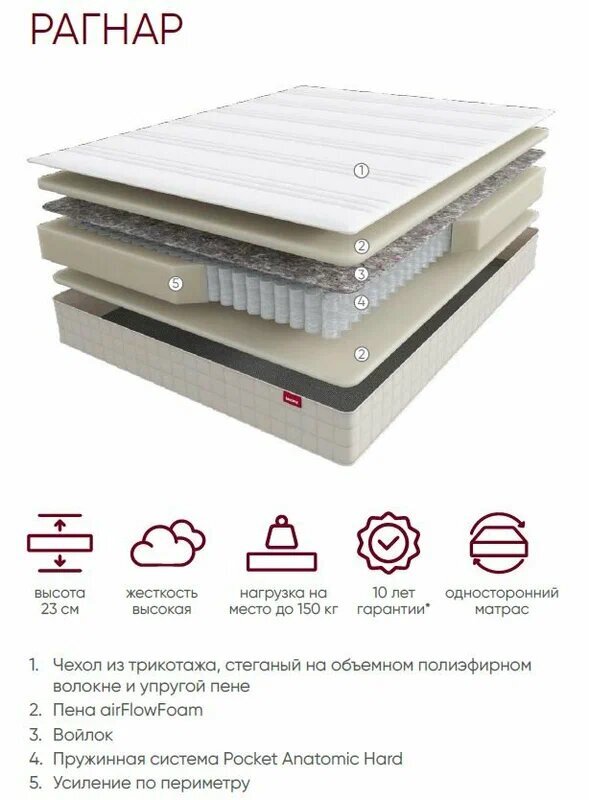 Матрас Викинг Рагнар - это стандартный матрас, который обеспечивает комфортный и здоровый сон.