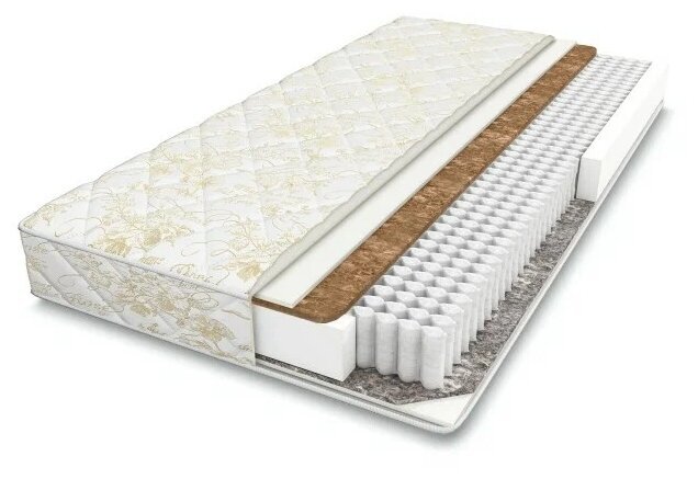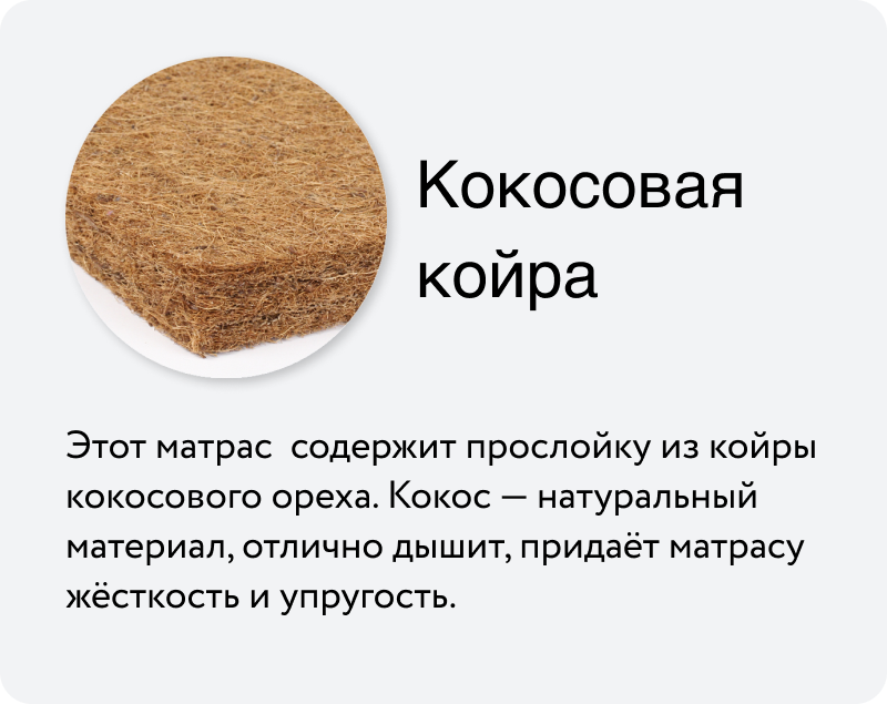 Бикокос входящий в состав матраса толщиной 1 см. обладает высокой жесткостью, формирует поддерживающие свойства матраса, обеспечивает дополнительную поддержку позвоночника во время сна.