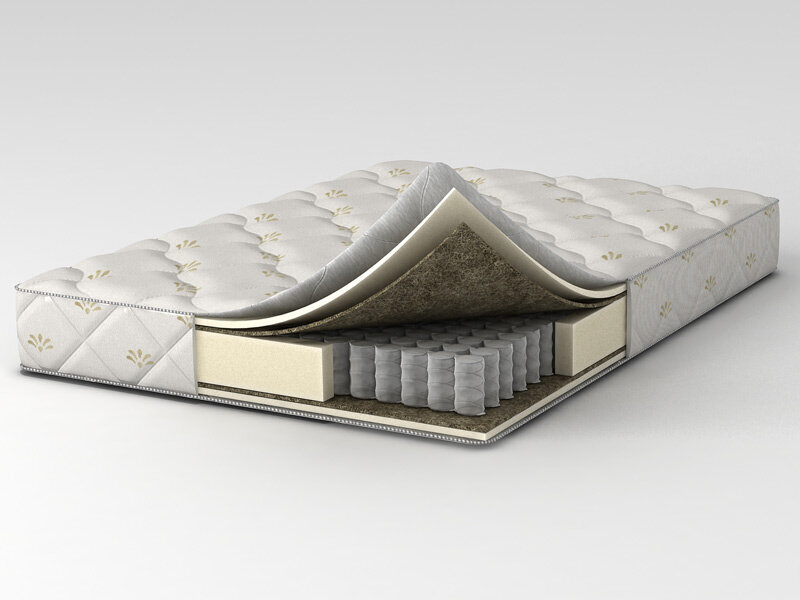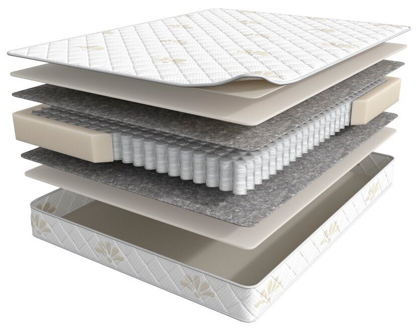 Войлок изолирует внутренние слои от перетирания пружинным блоком, а так же равномерно распределяет давление на матрас и продлевает срок службы. Войлок – нетканый материал, состоящий из натуральных и синтетических волокон.