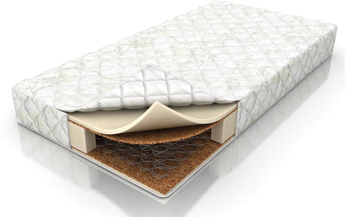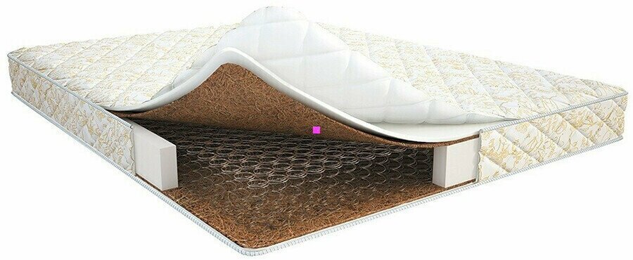 Наполнитель матраса состоит из двух материалов: пенополиуретана (ППУ) и кокосовой койры. ППУ обеспечивает мягкость и комфорт, а кокосовая койра придает жесткость и упругость. Благодаря этому сочетанию, матрас обладает умеренной жесткостью с обеих сторон, что способствует правильному положению позвоночника во время сна.
