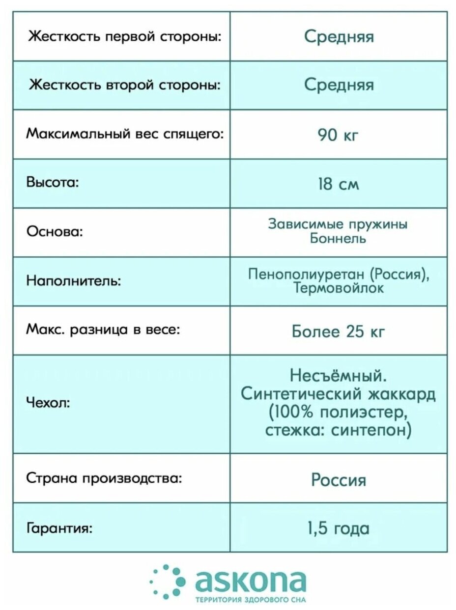 Выбирая матрас Balance Practice, вы получаете комфортный и здоровый сон, а также гарантию качества от известного производителя Аскона-век.