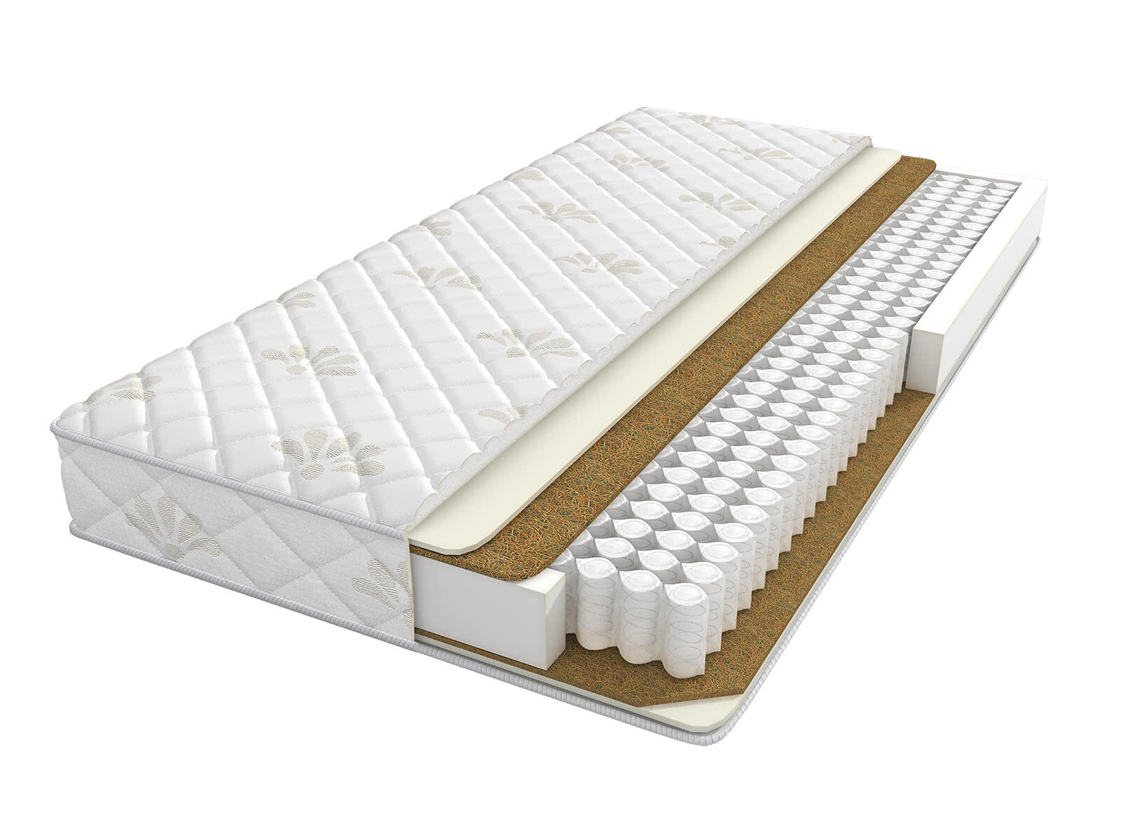 Наполнитель матраса состоит из пенополиуретана (ППУ) и кокосовой койры, что обеспечивает оптимальную жесткость и вентиляцию. Чехол матраса выполнен из качественного жаккарда, который приятен на ощупь и легко чистится.