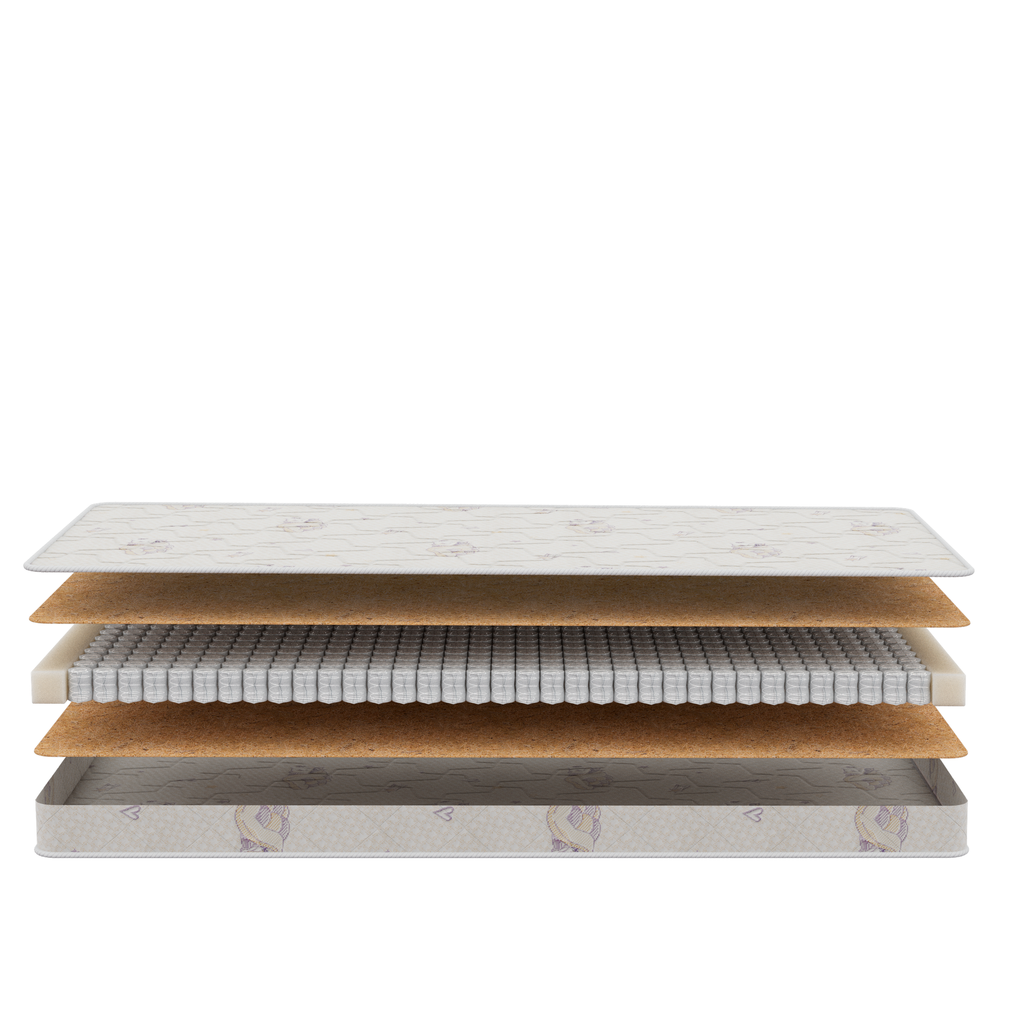 Наполнитель матраса - кокосовая койра, которая известна своими гипоаллергенными свойствами и способностью поддерживать оптимальную температуру тела. Это делает матрас безопасным и комфортным для использования даже для самых маленьких детей.