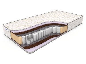 Матрас оснащен независимым пружинным блоком, который обеспечивает оптимальную поддержку позвоночника и равномерное распределение нагрузки.