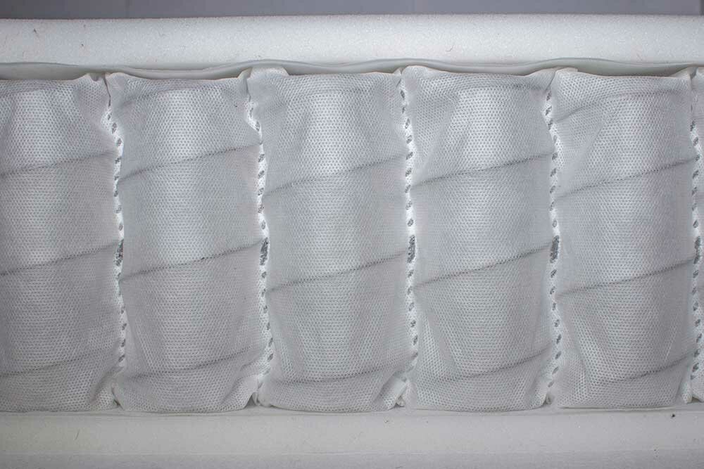 В основе данной модели - блок независимых пружин - TFK (250 пружин на кв.м.), где каждая пружина заключена в отдельный чехол из спанбонда. Такая конструкция предотвращает появление эффекта гамака, а так-же способна справится в разницей в весе спящих - более 25 кг. Внешние слои наполнителей матраса отделены защитным слоем спанбонда, который защищает материал от губительного воздействия, связанного с работой пружинного блока.