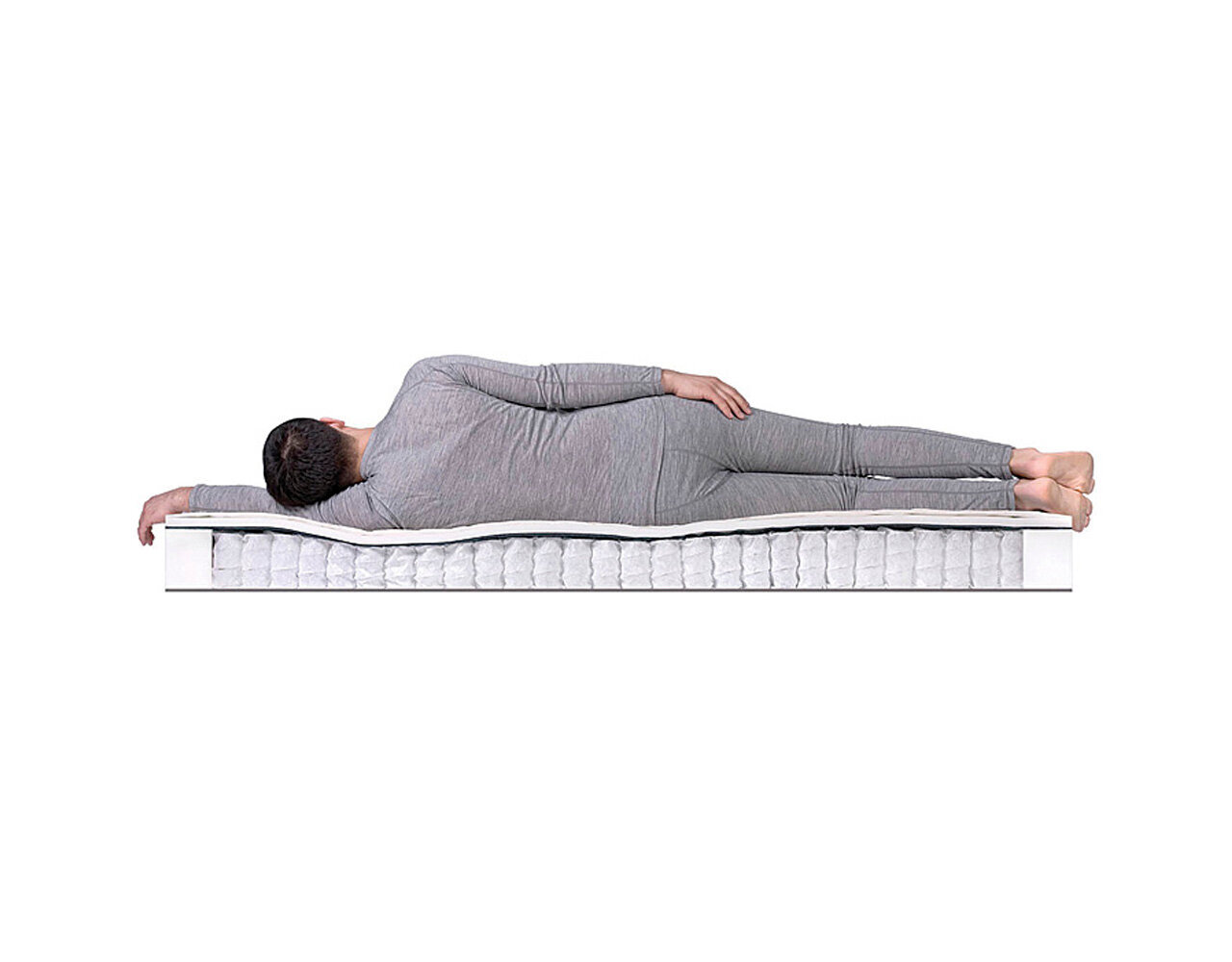 В основе данной модели - блок независимых пружин - TFK (250 пружин на кв.м.), где каждая пружина заключена в отдельный чехол из спанбонда. Такая конструкция предотвращает появление эффекта гамака, а так-же способна справится в разницей в весе спящих - более 25 кг. Внешние слои наполнителей матраса отделены защитным слоем термовойлока, который защищает материал от губительного воздействия, связанного с работой пружинного блока. Сторона А - характеризуется высокой степенью анатомичности, за счёт слоя из искусственного латекса. Сторона Б - представляет собой сочетание искусственного латекса и материала Poly Refine, последний в свою очередь обеспечивает ярко выраженную поддержку позвоночнику, а так-же более равномерно распределяет нагрузку на пружинный блок.