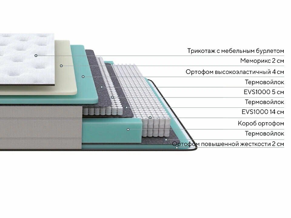 Coврeменный матeриал меморикс создает невероятно приятный обволакивающий эффект, повторяя контуры тела, позволяет максимально расслабиться во время сна. За счет использования мягких материалов и блоков с независимыми пружинами матрас обладает высоким уровень анатомических свойств.