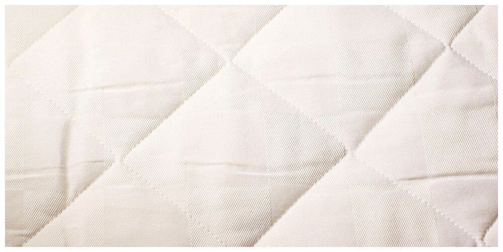 Трёхслойный съёмный чехол в белую клетку из комбинированной хлопковой ткани мягкий и износостойкий. Подходит для сухой или влажной уборки. Гипоаллергенный материал, благодаря хлопковой нити, делает поверхность воздухопроницаемой и гигроскопичной. Он хорошо вентилирует внутри матрасное пространство и восстанавливает температурный баланс.
