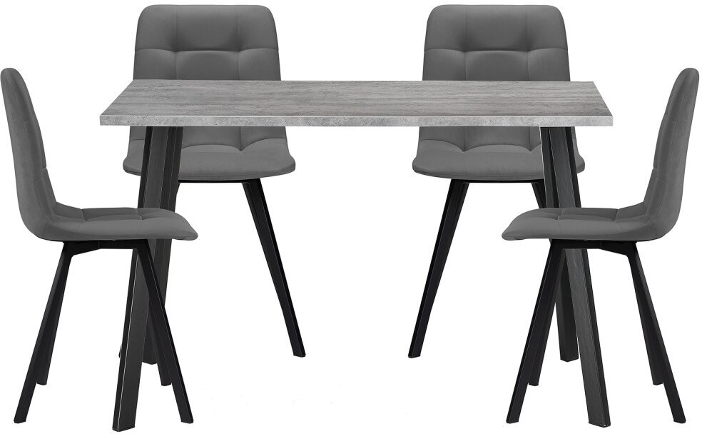 Текстильная обивка стульев и стола придает обеденной группе Мальба изысканный вид. Цвет темно-серый / бетон / черный матовый подчеркивает современный дизайн и позволяет гармонично вписаться в любой интерьер.
