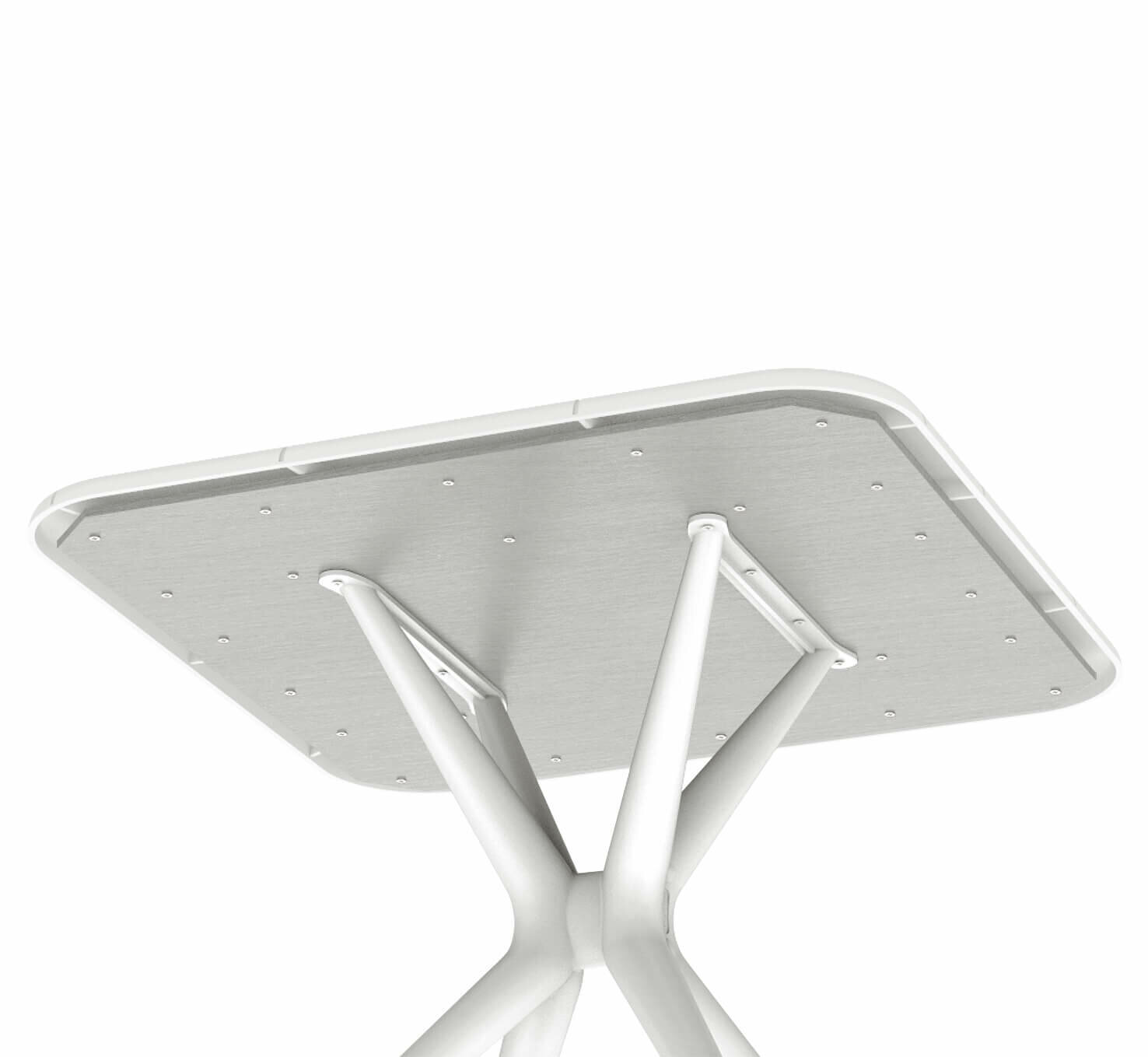 Материал столешницы и подстолья выполнен из пластика, что обеспечивает легкость и прочность конструкции. Толщина столешницы составляет 2,5 см, что гарантирует устойчивость и долговечность изделия.