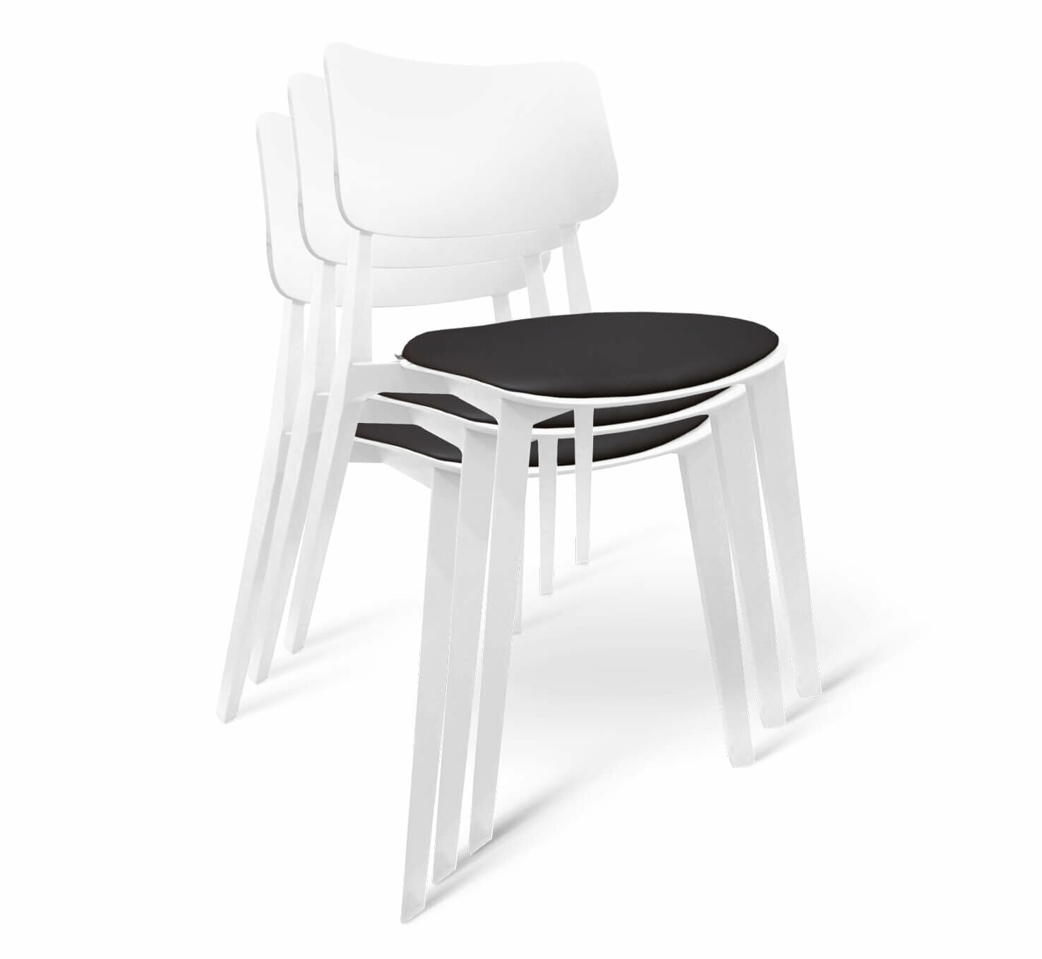 Каркас стульев изготовлен из армированного пластика, что обеспечивает их устойчивость и защиту от царапин. Каучуковые подпятники каркаса повышают устойчивость стульев и защищают покрытие от царапин.