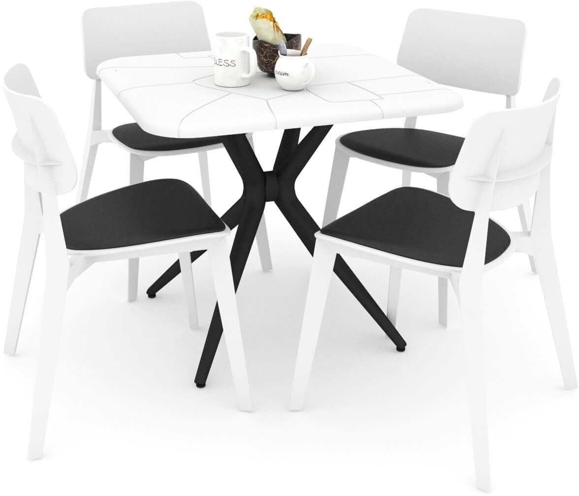 Обеденная группа Sheffilton SHT-DS135 предназначена для комфортного размещения до 4 персон. Квадратная форма столешницы и удобные размеры (длина стола составляет 83,5 см, ширина – 83,5 см, а высота – 76 см) позволяют разместить достаточное количество блюд и напитков.