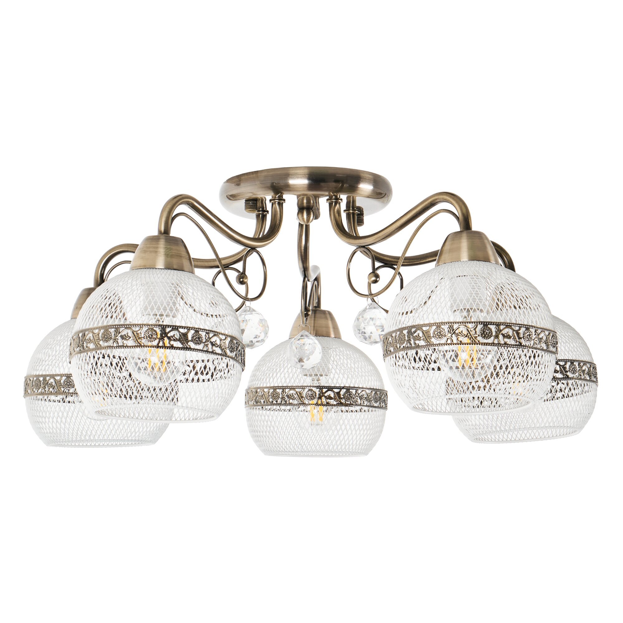 Люстра оснащена пятью плафонами круглой формы, направленными вниз. Это обеспечивает равномерное и мягкое освещение, создавая уютную атмосферу в помещении.