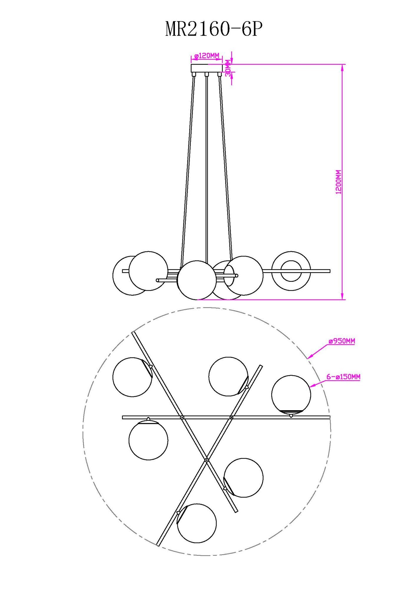 Люстра оснащена шестью плафонами, выполненными из стекла и имеющими круглую форму. Плафоны расположены таким образом, что свет распространяется в стороны, создавая равномерное и приятное освещение.